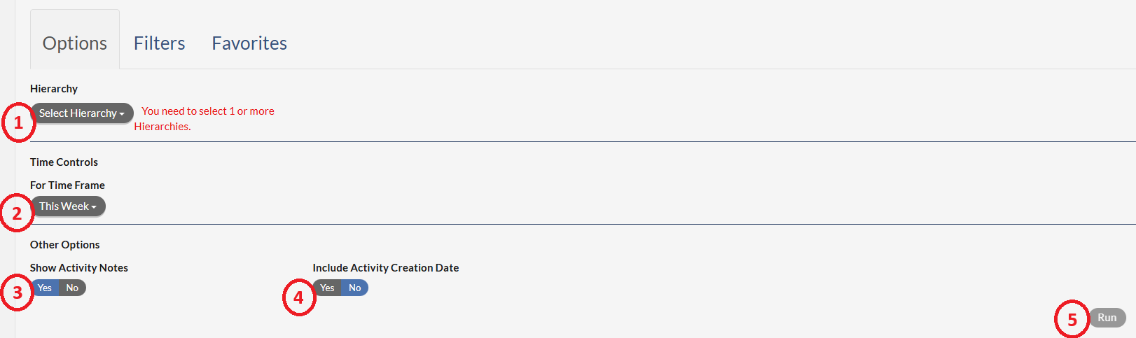 - Show Activity Notes Selection - a yes or no selector on if you would like to see the notes from the activity.