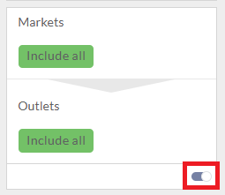 Note that filters can be disabled through the toggle on the bottom of each filter. Disabling a filter will cause that filter to function as an all. For example, disabling the Account filter is the same as Include All Accounts filter.