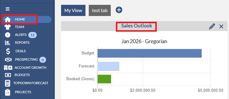 2. Click the Sales Outlook Data card. Note: if you don't see Sales Outlook on one of your data cards, please add Sales Outlook as your data card. Click here for the instruction.