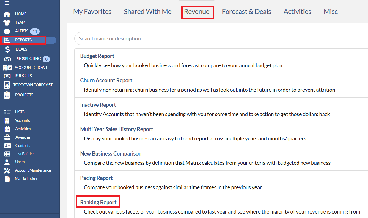 The Ranking Report allows you to see where revenue is coming from for the top performing or bottom performing attributes. The Ranking Report will allow for some basic analysis on year over year rankings to find areas of growth or decline.
