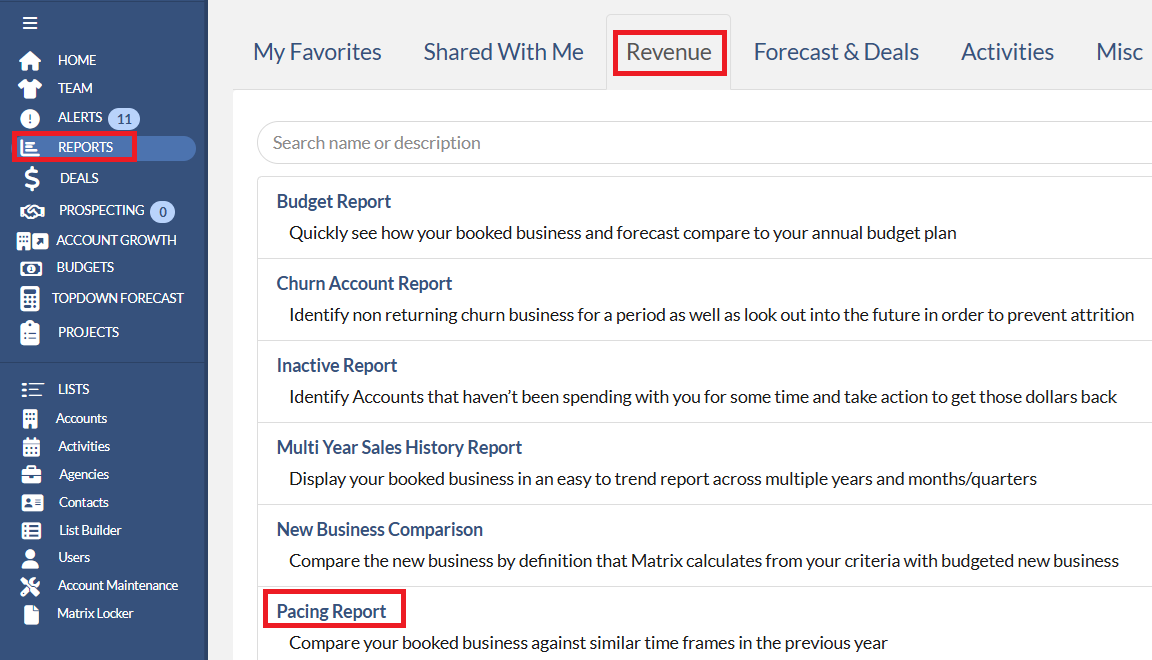 The Pacing Report provides an easy way for you to see if you, your team, or your entire enterprise are performing better or worse than you were for a similar time period (last year, 2 years ago, etc).