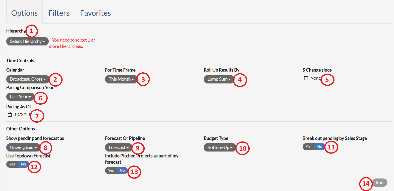 - Show Pending and Forecast As Selection - allows you to show the pending and forecast as weighted or unweighted.