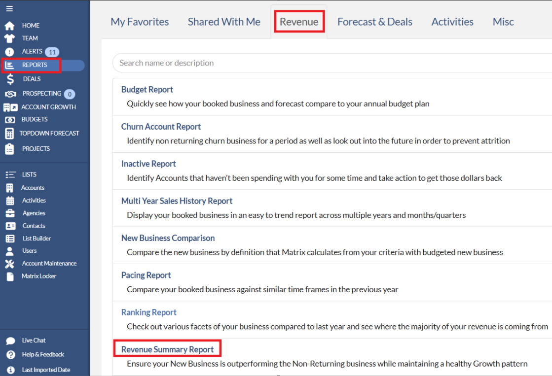 The Revenue Summary Report provides a way for you to see how you, your team, or your entire enterprise are offsetting Lost dollars with New and Returning business to continue growing.
