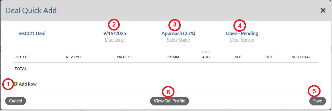 6. View Full Profile - Click this button if you would like to save all your current changes and be directed to the Deal Details Page. Please view this article to learn more about Deal profile: Monarch - Deal Profile Overview