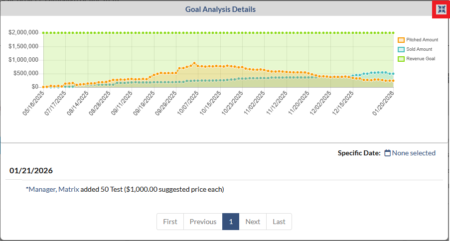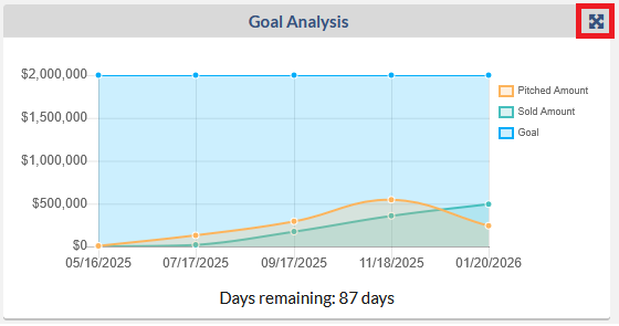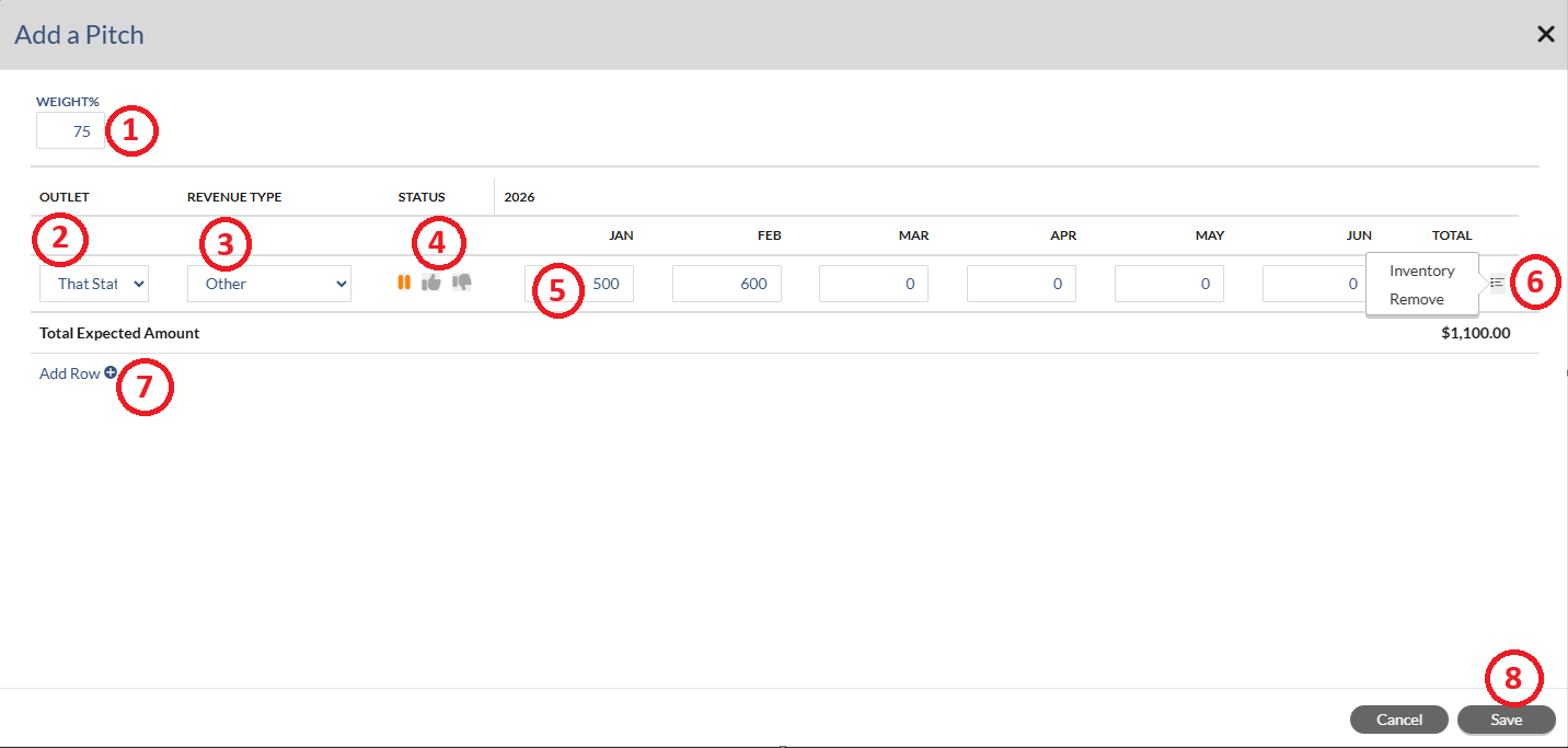 Note that once you click the dollars amount on $Pitched, $Sold or $Declined columns, the Add a Pitch dialog will display and you can add or edit the dollar amount on this dialog.
