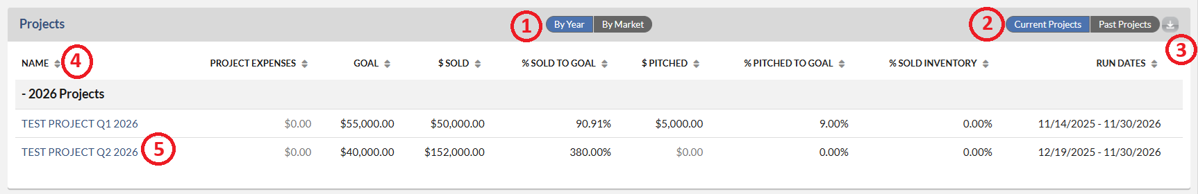 2. Current Projects | Past Projects - You can also filter by current & past projects by run dates.