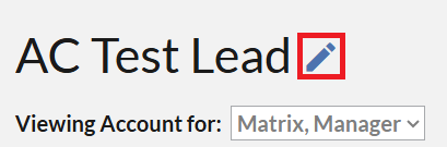 1. While in the Account Profile, select the Pencil Icon to Edit the Account.