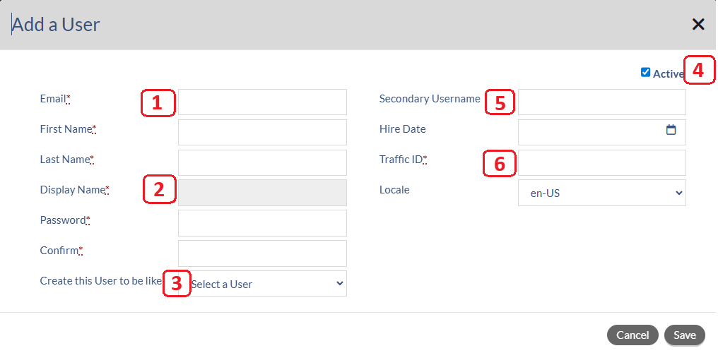 - Create this User to be like – select a user that is active on the team. ***Note if you are hiring a new salesperson that will be selling Broadcast and Digital, and you already have a salesperson that sells this way, then you will want to choose that existing salesperson in order to let Matrix apply the appropriate Team, Role, and Grouping structure on the back end. If you have a totally new scenario, please contact Matrix Support to further discuss this need.