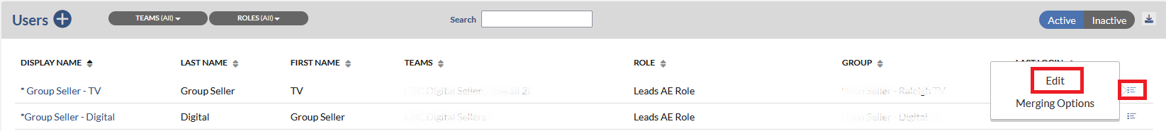 2. Click on the menu icon that appears on the far right next to the user that you wish to edit, and then select the Edit option.