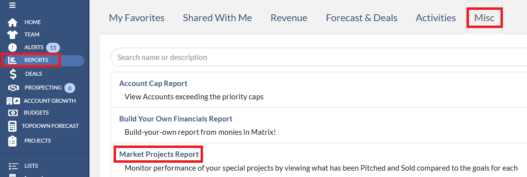 To create the Market Projects Report, please follow the below instructions: