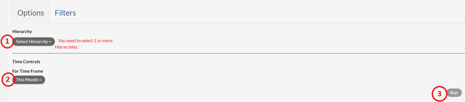 1. Hierarchy Selection - n this drop-down you may select the attribute(s) that are to be on the report.