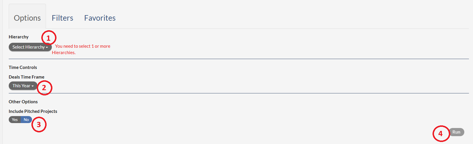 3. Include Pitched Projects - Set to Yes or No. Please set it to Yes, if you would like to include Pitched Project on the report.