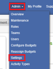 1. On the Admin site, navigate to Admin and select Settings.