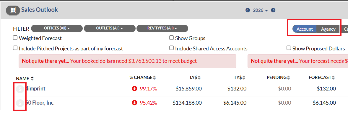 - On the Account or Agency profile, click the small pencil icon next to the Account or Agency name. This will bring up the Edit the Account/Agency dialog