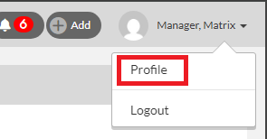 1. Navigate to your name located on the right top of the page and click Profile.