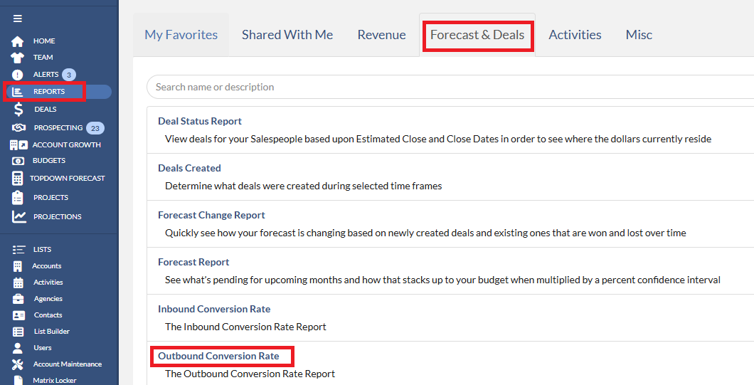 To create the Outbound Conversion Rate report, please follow the below instructions: