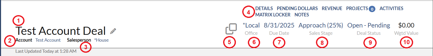 4. Section Names - Showing each sections on the Deal profile. When you click on the section name, it will take you to that section of the Deal Profile.