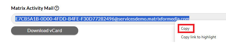 3. Select the email under Matrix Activity Mail. Then right - click and select Copy.